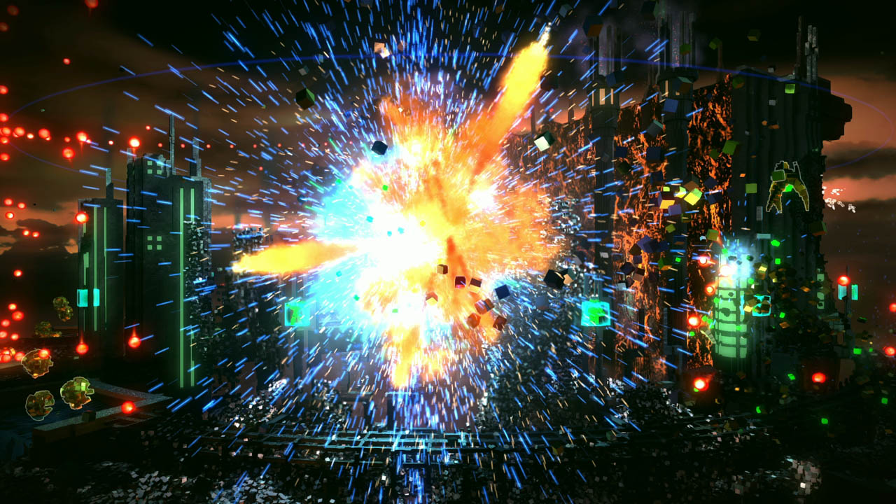 Trzeba przyznać, że graficznie gra prezentuje się naprawdę ładnie. Widać, że to produkcja przygotowana na tę generację. Jest kolorowa, ostra, pełna efektów i fajerwerków. Każdej chwili coś dzieje się na ekranie – wszystko bez żadnej czkawki. Kolory, cząsteczki, wybuchy. Naprawdę podczas gry możemy dostać oczopląsu, ale w pozytywnym znaczeniu. Do tego wszystkiego dochodzi naprawdę dobre udźwiękowienie, które pasuje idealnie do całej rozgrywki. Z głośniczka w padzie dochodzą informacje przekazywane nam przez sztuczną inteligencję, która w pewien sposób pomaga nam podczas wykonywania zadań.